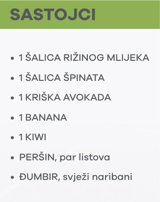 Ja ga pijem ujutro nakon treninga (jer prije ne jedem ništa) i daje mi potrebnu energiju sve do ručka. Pripremim ga večer prije i ostavim u frižideru preko noći. Svježe cjeđene sokove pokušajte konzumirati što prije kako ne bi izgubili vrijedne sastojke. Umjesto rižinog mlijeka možete staviti bademovo ili neko drugo biljno mlijeko, samo što će se onda i okus malo promijeniti.